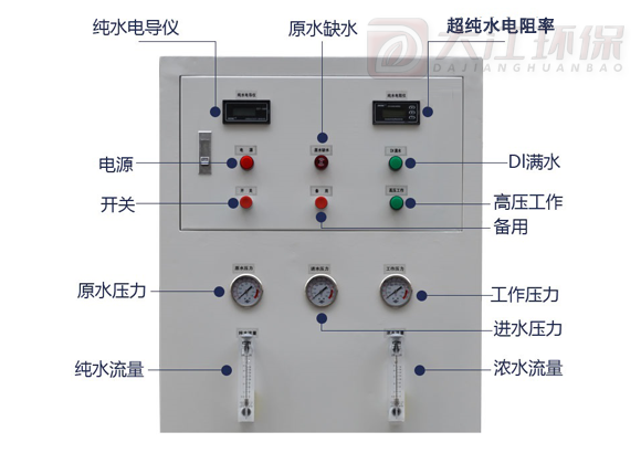 无水或水压低、满水停机、超纯水超标报警、系统密码、报警时自动重启等; |
